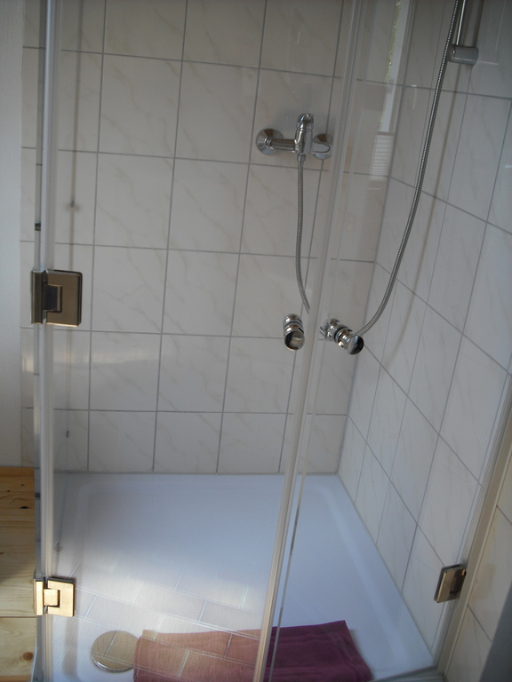 Sie verfügt über ein Badezimmer mit Dusche, zwei Schlafzimmer mit Einzelbetten